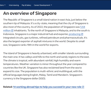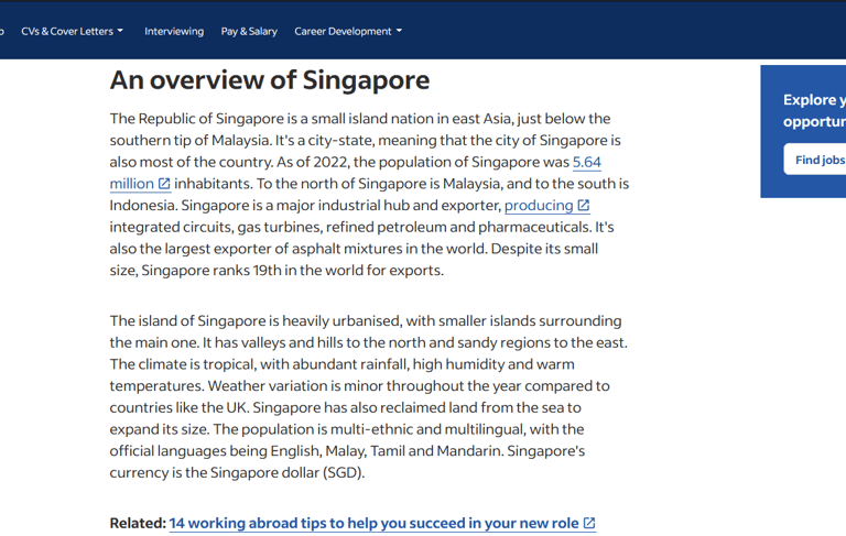 An article on Indeed UK's career guides detailing what it's like to work in Singapore, including an overview of the country, in-demand jobs, visa requirements, and more.