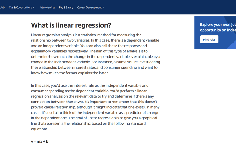 Article on Indeed UK explaining how to find the R-squared value for linear regression using different spreadsheet software applications.