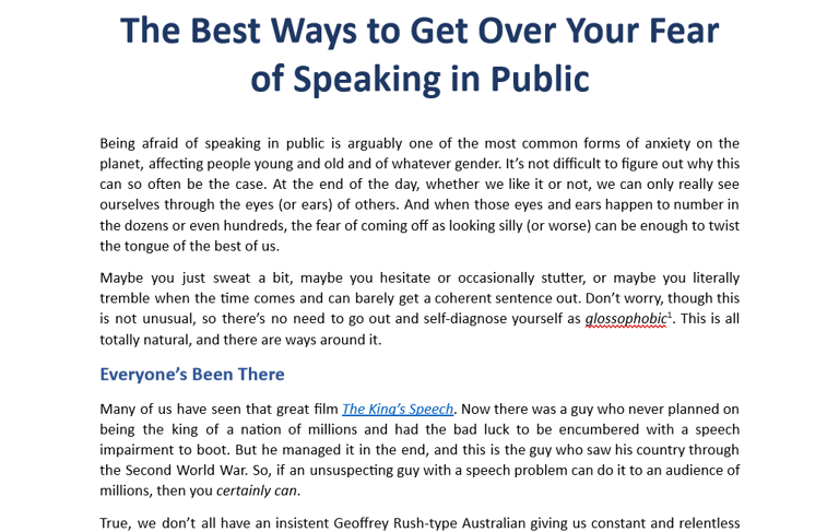 An article for a US marketing site on fear of speaking in public and how to overcome it.