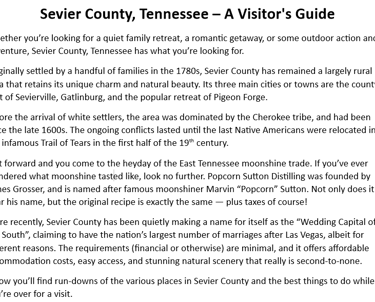 Guide article for the US market on the history of Sevier County, Tennessee and its various attractions.