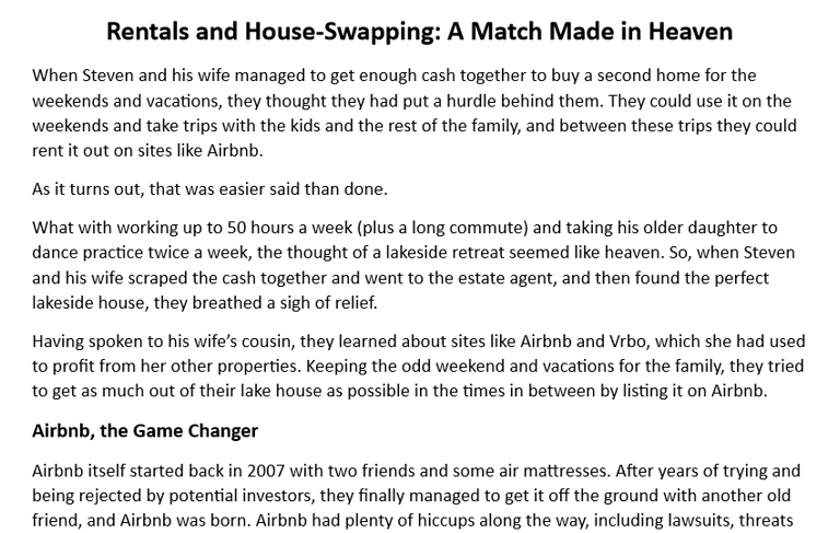 Article for the US market on the advantages of home swapping and services like Airbnb, specifically for a new service based on house-swapping credits.